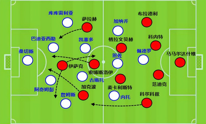 这次也是一样的道理,边路位置伊萨克起速,被切尔西球员包围后,他传给加克波。后者再加速打穿了切尔西的侧翼,可惜中路索博斯洛伊没能把握住机会。